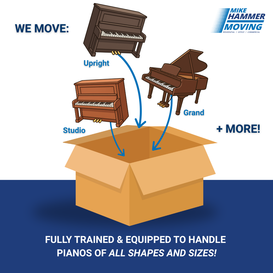 Piano moving is one of the many specialty moving services offered by the experts at Mike Hammer Moving.